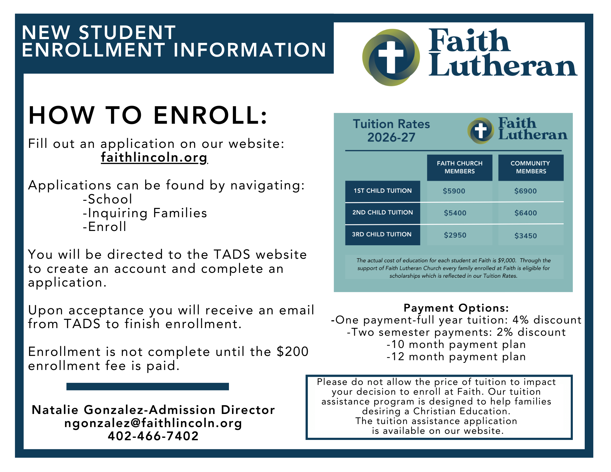 At Faith, we call one another family. We take that seriously! From the relationships with the educators, to our staff, and other parents, your family will be enveloped as we partner with one another to love, support and encourage all students and families!
